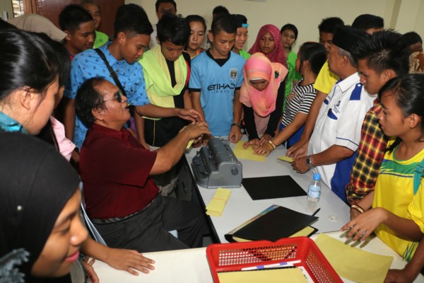 Briefing on Braille to teachers/students of SMK Tongod during their visit to Taman Cahaya on 25/10/2015. Tweet Pin It