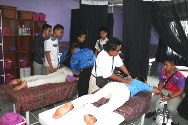 Visitors during visit from SMK Tongod to Taman Cahaya on 25/10/2015 enjoying body massage by blind masseurs.