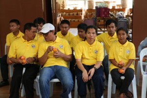 Some of the fresh visually impaired trainees at Taman Cahaya attending to visit from members of the Pertubuhan Penganut Amitabha Buddha Sabah, Sandakan on 24/1/2016.