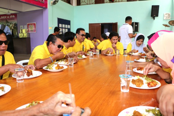 Start of the food enjoyment by the visually impaired trainees, ex-trainees and their family members in conjunction with the New Year 2016 celebration function held at Taman Cahaya on 24/1/2016. Tweet Pin It