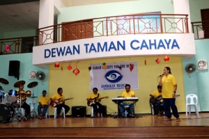 A visually impaired participant giving her best during the Singing Talentine Contest organised in conjunction with the new Year 2016 celebration held on 24/1/2016.