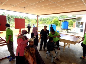 Blind trainees/inmates at Taman Cahaya given free haircut by staff of Green Edible Oil Sdn Bhd, Sandakan during their visit on 23/4/2016.