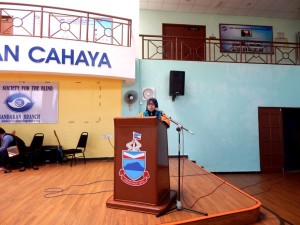 Representative of MC Oceanic Sandakan giving a speech during their visit to Taman Cahaya on 30/4/2016. Tweet Pin It