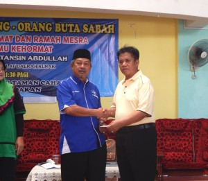 Presentation of donation by representative of the Islamic Association of Kunak to Taman Cahaya’s Supervisor during their visit to Taman Cahaya on 12/5/2016.