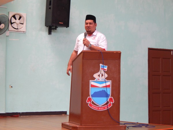 Representative (Mr Rizan Aziz) from UMNO Youth giving a speech during their visit to Taman Cahaya on 21st June 2016 in conjunction with their Hari Raya celebration functions. Tweet Pin It