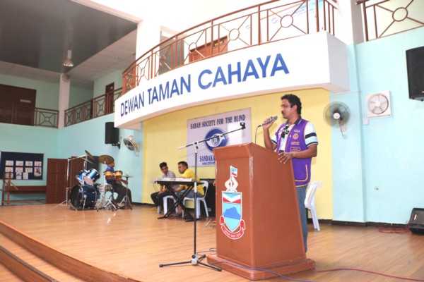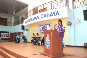 President of Lions Club of Sandakan Selingan Mr Clement Sammy giving a speech during visit by Lions Club to Taman Cahaya on 24th July 2016. Tweet Pin It