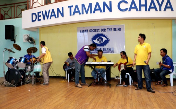 Mr Clement Sammy the President of Lions Club of Sandakan Selingan and Club members thanking the blind musicians for the musical entertainment during visit on 24th July 2016. Tweet Pin It