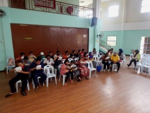Blind trainees and inmates at Taman Cahaya enjoying free refreshment during visit by students of the Sandakan Nursing College and Sandakan Vocational College on 24th September 2016.