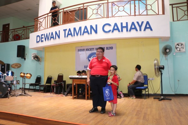 Presentation of prizes to the winners of the Children Colouring Contest held in conjunction with the Merdeka Fun Bicycle Ride For The Blind Event organised jointly by Sandakan Young Malaysian Movement, Artlex Centre and Life Water Industries Sdn Bhd (K2) on 2nd October 2016.