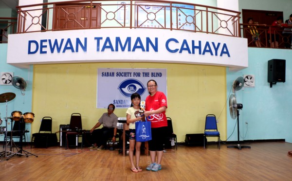 Presentation of prizes to the winners of the Children Colouring Contest held in conjunction with the Merdeka Fun Bicycle Ride For The Blind Event organised jointly by Sandakan Young Malaysian Movement, Artlex Centre and Life Water Industries Sdn Bhd (K2) on 2nd October 2016.
