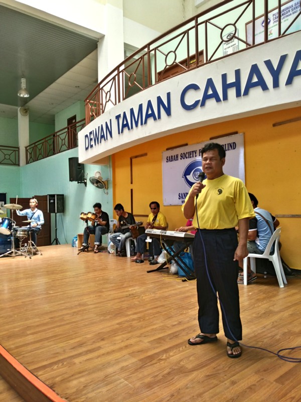 A visually impaired belting out a song for the listening pleasure of the visitors from IOI Edible Oil Palm factory, Sandakan on 18th April 2017.