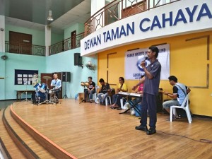 A staff member of IOI Edible Oil Palm factory Sandakan giving a musical rendition during visit to Taman Cahaya on 18th April 2017. Tweet Pin It