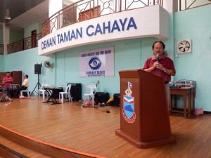 YB Wong Tien Fah giving a speech during his & DAP member’s visit to Taman Cahaya on 11/2/2018.