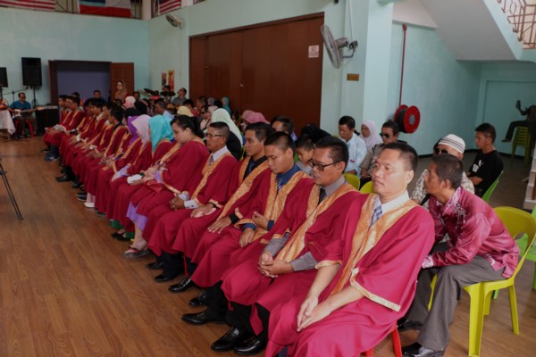 Visually handicapped trainees awaiting receipt of their graduation certificates at Taman Cahaya held on 26/8/2018.