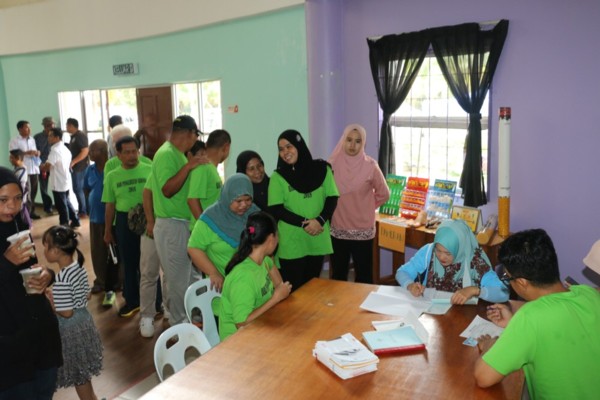 Visually impaired inmates and general public members queuing up for registration for free blood test and eye examination conducted by specialists and nurses of Duchess of Kent Hospital Sandakan and Rancangan Sg. Manila Health Clinic during the World Sight Day function held at Taman Cahaya on 14th October 2018.
