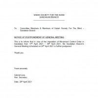 The Board Management of Sabah Society For The Blind and Staff of Taman Cahaya Training Centre For The Blind, Sandakan wish all our kind Muslim friends and donors a Selamat Hari Raya Aidilfitri ! Thank you for your continuous supports and stay safe from Covid!
