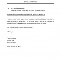 The Board of Management of Sabah Society For The Blind-Sandakan and Staff and blind trainees/inmates of Taman Cahaya Training Centre For The Blind – Sandakan wish all our kind supporters and friends a Happy & Prosperous New Year 2021! May you always be blessed with joy and good health & stay safe.