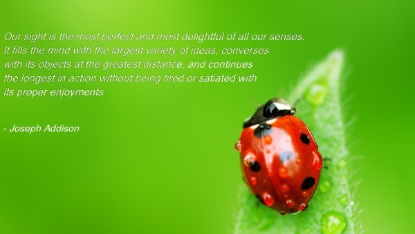 Our sight is the most perfect and most delightful of all our senses. It fills the mind with the largest variety of ideas, converses with its objects at the greatest distance, and continues the longest in action without being tired or satiated with its proper enjoyments – Joseph Addison