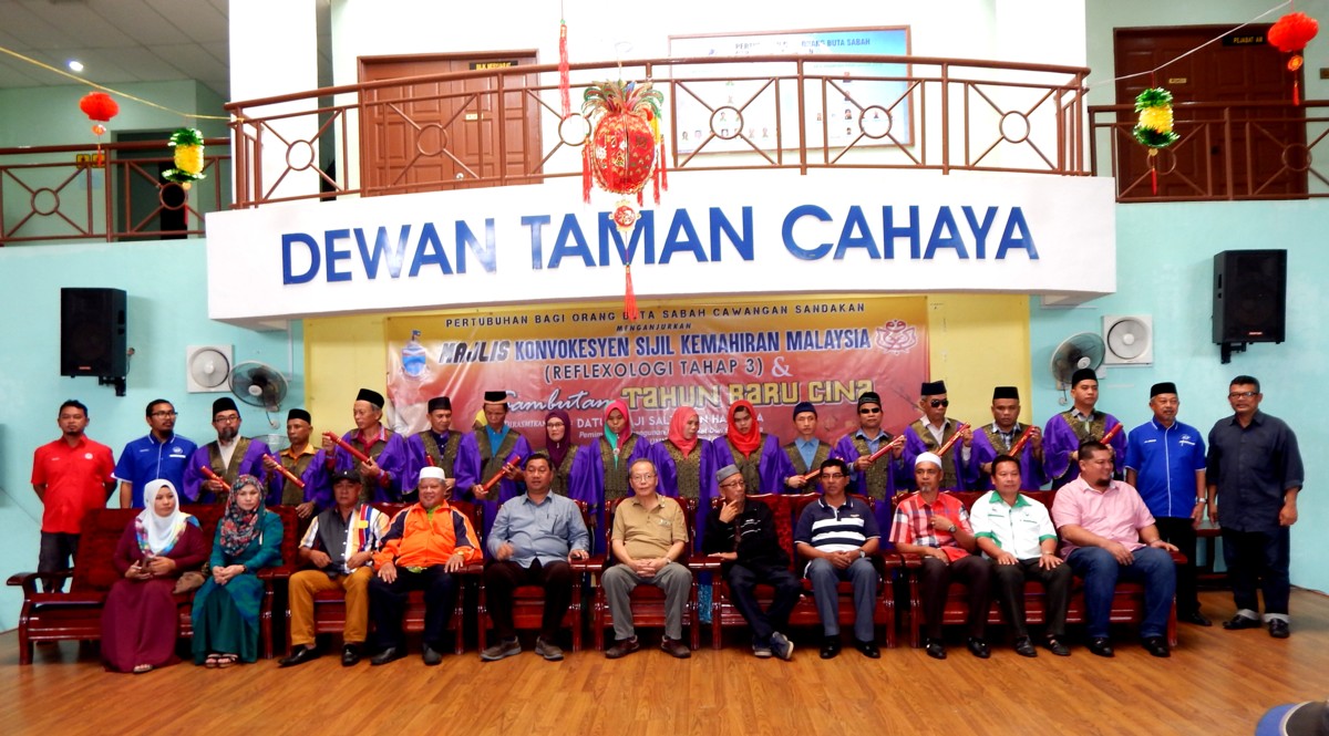 14 visually handicapped and blinds trainees comprising of 14 male and 4 female completed their Malaysia Skills Training on Reflexology – Level 3. The graduation certificates were presented to the trainees by invited VIP Datuk Haji Salzo during a Convocation Ceremony held on 22nd January 2017 at Taman Cahaya.