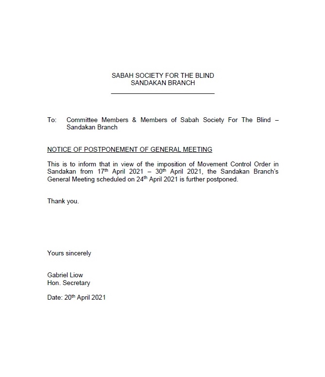 Postponement of General Meeting